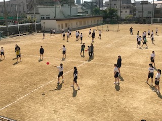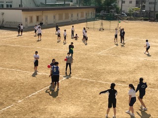 2年生は、今日の6限目を使い、学年レクリエーションとしてグラウンドで男女別にドッヂボール大会をしました。始業式から1か月がたち、次第にクラスごとの色も見えてきました。各クラスとも一致団結して取り組んでいました。今日で4月の授業が終わり、長い連休に入りますが、健康に過ごしてほしいと思います。もちろん、休み中の宿題も忘れず取り組んでくださいね。