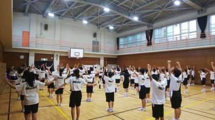 朝の集い、でラジオ体操。昨日遅くまで起きていた人、しっかり身体を起こしてください。