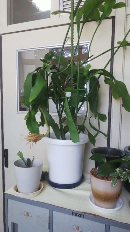管理作業員室前に月下美人の植木があります。咲かせるのが難しい花ですが、こんなに大きなつぼみができています。