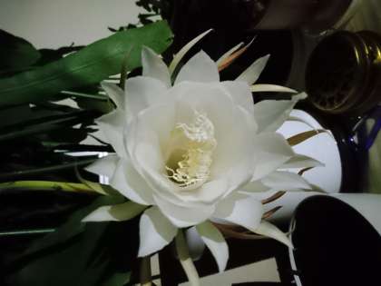 管理作業員室前の月下美人が咲きました。20:20頃から徐々に開き始め、21時ごろにこのように大きく花開きました。そのあとはまた徐々にすぼんでいきました。