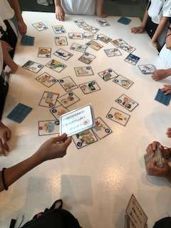 2階では、防災を学べるコーナーがあり、クイズやカルタなど、体験学習をしました。。