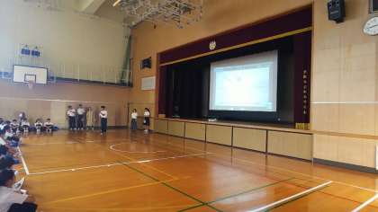 正門のピロティの正面の壁に飾る予定の、校訓の旗のデザインが決まりました。たくさんの応募の中から選ばれたものを、更に全体の選挙により決定しました。