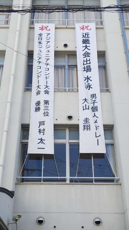 夏の大会等で優秀な成績を残した生徒の垂れ幕が作られました。おめでとうございます!