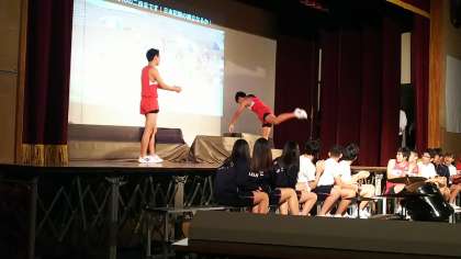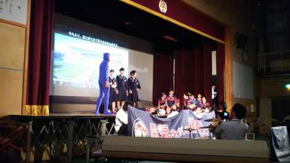 3年生は大きな物語設定として、桃谷中生徒がタイムスリップによって、過去の勝山中と鶴橋中の歴史をたどるというものでした。そしてその中でたくさんの生徒たちが、いくつものパフォーマンス、舞台表現にチャレンジしていました。短期間でよくここまで仕上げられたと思います。