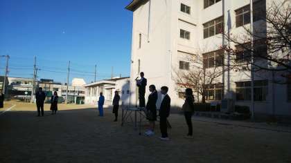 また、生徒会で取り組む、書き損じハガキの回収などの説明がありました。今日は小学校にも説明にうかがっています!