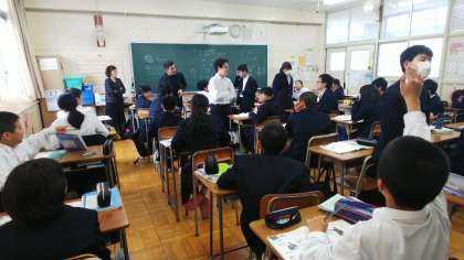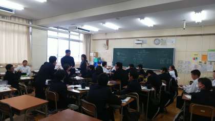 一年生の英語の授業をのぞくと、C‐NETのラファエル先生が授業をしていました。楽しそうに道案内の英語活動をしていました。