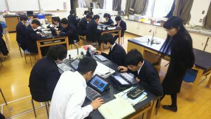 三年生理科の授業で、ICTを活用した授業をしていました。
