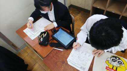 数学と理科で、冬休みの自主学習会をしていました。タブレットも使用しながら、熱心に取り組んでいました。