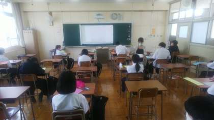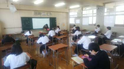 3回目の登校日、ようやく教室に入りました。分散登校のため、教室には生徒14、15人程度のため、がらんとしていました。今日の写真は各クラスの学活の様子です。