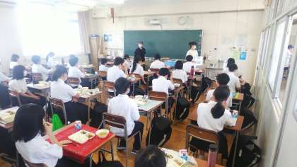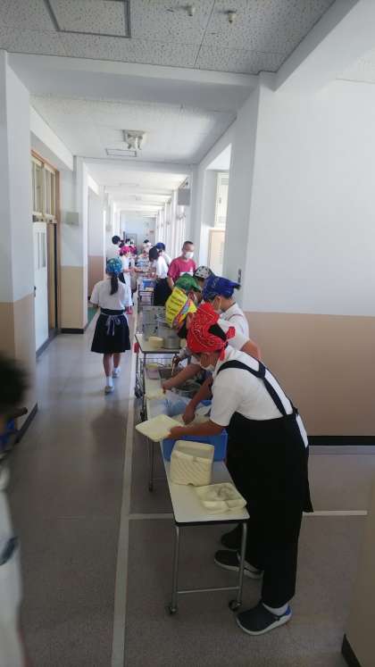 各学年、配慮の上で給食も実施しています。美味しい給食でお腹一杯に??