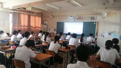 8月25日火曜日、2学期の始業式を執り行いました。校長先生の新学期にあたってのお話と、生徒会からのあいさつと、目標など話してもらいました。「Teams」の活用はまだ十分ではありませんが、少しずつ進んでいます。