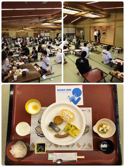グリーンピアせとうちでの最後の食事となる朝食を頂きました。その後は、退館式。ホテルの方にも褒めていただきました。この後、更衣、荷物整理、清掃と続きます。9:20に退館し、宮島へ向けて出発します。