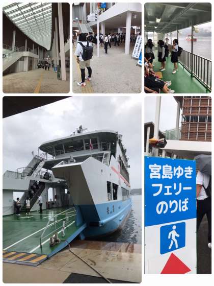 到着が遅れてしまいましたが、無事にフェリー乗り場に到着。今、出航しました。バス乗車中は大雨でしたが、現在雨が止み、ほのかに日の光が指しています。ミラクルの始まりの予感。