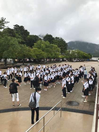 宮島に到着。雨もほとんど止み、無事に自由散策できそうです。これから2時間、もってくれるといいですが、さてどうでしょう。みんな気をつけて行ってらっしゃい。