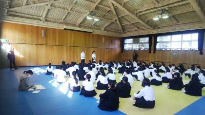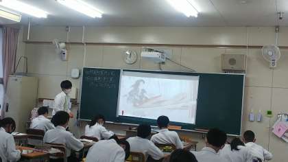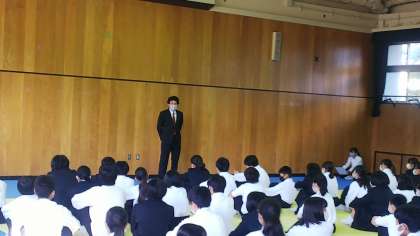 今週、学年集会の中で、今勉強中の教育実習生が話をしていました。授業の方も進めています。