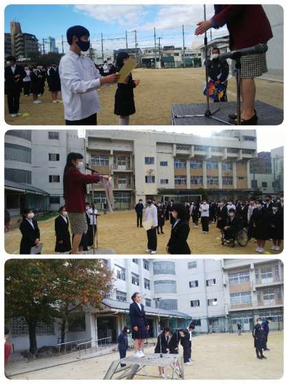 今日は認証式も行われ、後期生徒会が発足しました。これからの生徒会、自治をしっかりと支えてほしいと思います。