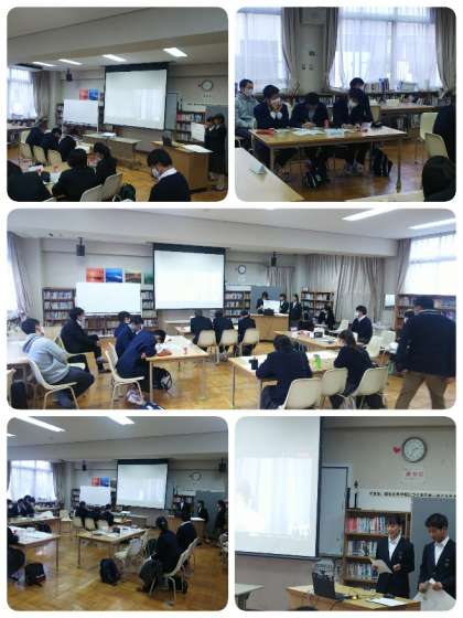 土曜授業の後、午後の時間帯で、大阪市中学校第4ブロック‐A生徒会交流会が開催されました。今回はオンラインで、13校の生徒会がそれぞれ三つの会場に集まり、意見交流を行いました。普段よりも内容の深い交流ができたのかもしれません。協力いただいた皆さん長時間ご苦労様でした。