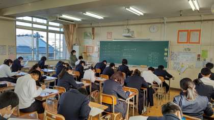 今日は3年生の第四回目の実力テストが実施されました。いつもの実力テストよりも、真剣味がさらに増している様子でした。弱点を克服するためのものとして、やり直しをしっかりとやっておいてください。