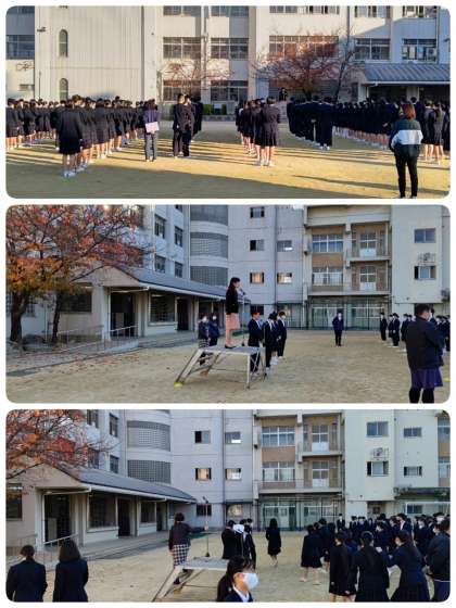 全校集会もレッドステージに配慮して間隔を大きめにとっています。