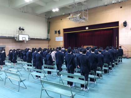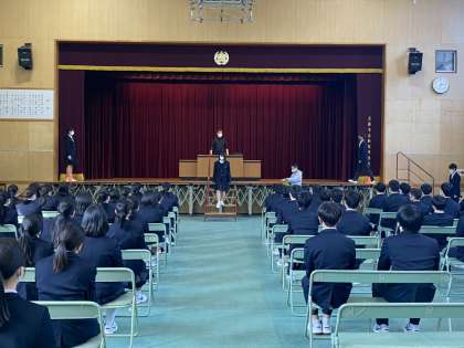 3年生は、今日最後の授業を終えて、午後から本格的な卒業式の練習に入りました。入場から始まり、式の流れ、そして卒業証書の授与を全員が練習しました。細かな点を注意し、退場の練習で締めくくりました。