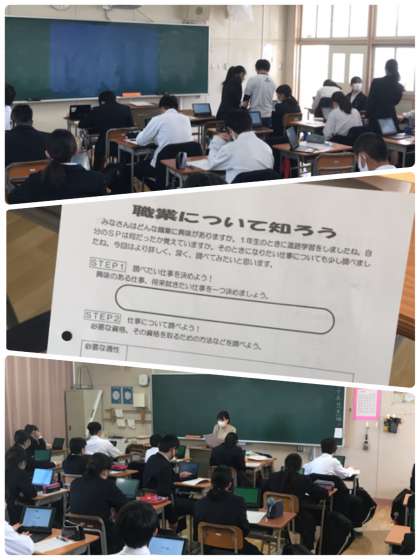 2年生は、1年の3学期に取り組んだ進路学習のまとめとして職業調べに取り組みました。この後、調べた内容をまとめて、新聞を作成します。どんな新聞ができるか楽しみですね。