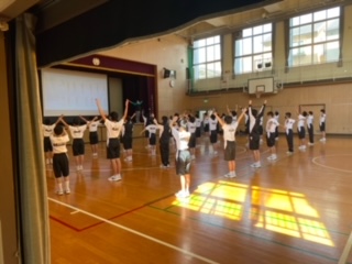 今日は久しぶりの体育がありました。皆、体育を心待ちにしていたようです。男女共にラジオ体操に取り組みました!