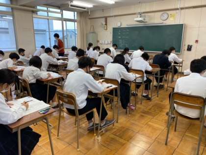 本日は、全国の中学校3年生対象で行われる全国学力学習状況調査です。国語と数学の2教科です。がんばっています!
