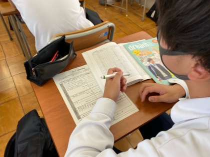 本日6時間目、第1回進路希望調査についての取り組みを行いました。進路希望の書き方や調べ方などを、冊子やホームページを参考にしながら確認しました。