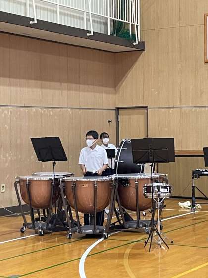 吹奏楽部が体育館で最終調整をしました。明日は早朝からの楽器運搬、そして緊張の本番です。練習の成果が発揮してすばらしい演奏ができますように!