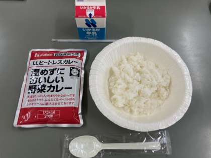 昨日お知らせしました、本日給食の変更献立(ヒートレスカレー)です。