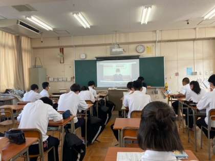 6時間目には、第4期生徒会役員選挙の演説と投票をオンラインで行いました。桃中の全員に関わる大切な選挙ということもあり、全員が立候補者と応援演説者の話を真剣に聞いていました。