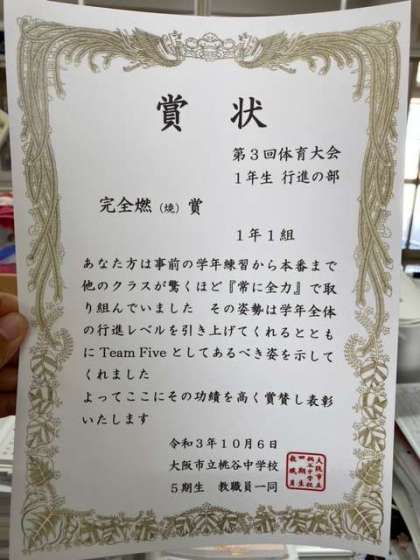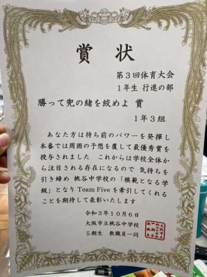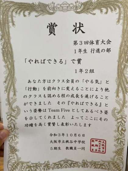 1組は次も「常に全力」で、2組は「やればできる」という気持ちで、3組は次も「1番」を目指しましょう。