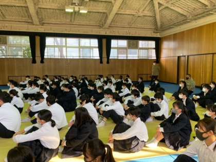 本日の学年集会では、植田先生から「日々感謝」をテーマにお話していただきました。