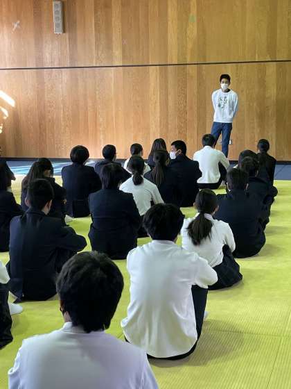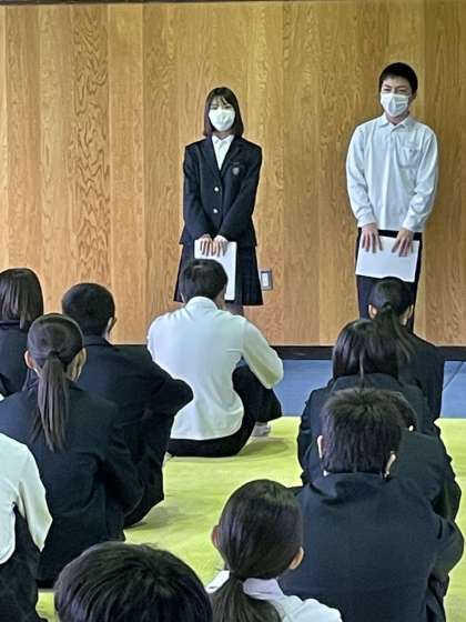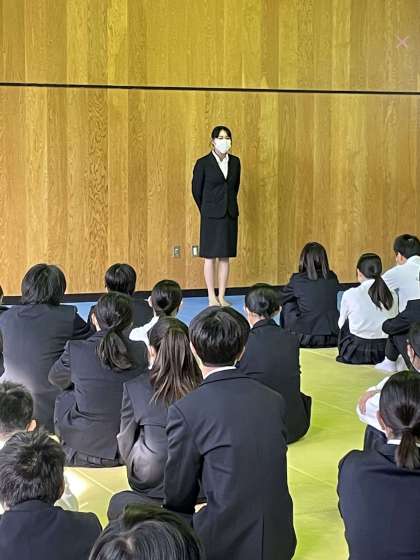 木曜日の朝は2年生が学年集会をしています。今日は新先生と教育実習の北野先生からのお話です。実習は明日が最終日。この3週間が近い将来生かされますように。