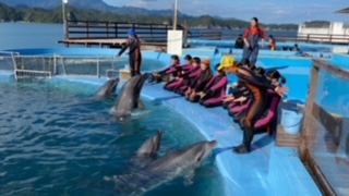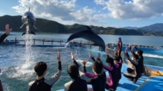 事前に選択していた体験をそれぞれ行っています!写真はドルフィンスイムです。イルカやクジラと一緒に泳ぎました!