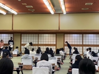 朝食のあと、そのまま退館式を行いました。いまから身支度をして、出発します!