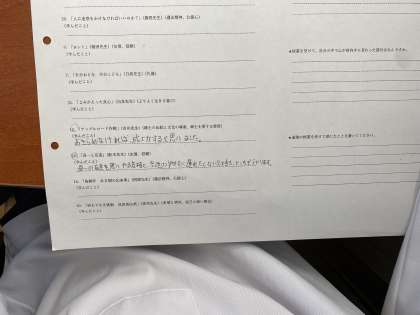 また、道徳の振り返りも行いました。普段気づきにくいことを様々な先生から教えていただき、自分の学校生活や私生活で活かせることができるようになれたら良いですね。