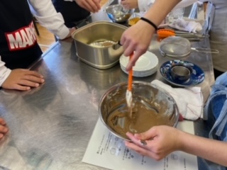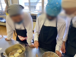 今日は1年2組が4時間目に調理実習をしました。