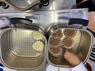 調理実習の続きです。本日は2時間目に3組が「蒸しパン」作りに挑戦しました。