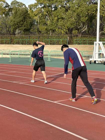 競技場の一般利用ができる日でした。競技場のタータン(競技場のゴムのような地面)で走るのは久しぶりです。地面からの反発があるので、いつもよりスピード感のある走りができます。そのぶん終わったらみんなヘトヘトです。たまたま卒業生の先輩にも会うことができました。高校でも陸上を続けてがんばっているようです。
