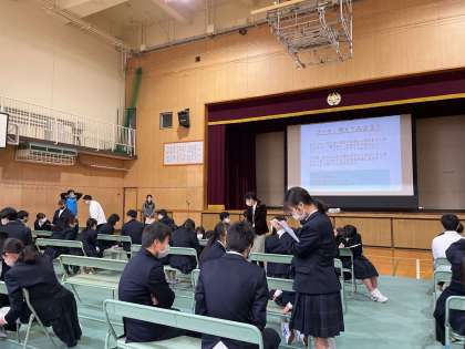 4日(金)5限・6限の時間に体育館で「LGBTQ」について学習をしました。からだの性、こころの性、性的指向、性別表現にはさまざまなグラデーションがあり、性的マイノリティにあたる人は、11人に1人いるなど理解を深めました。友達がカミングアウトしてくれたことを想定したディスカッションを通して、さらに理解を深めることもできました。