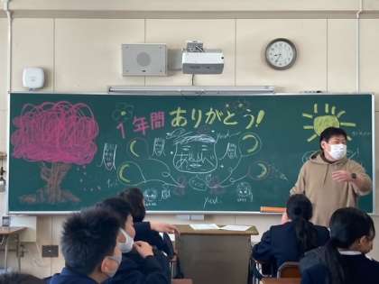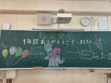 朝から1年生のみんなの登校時間がいつもより早いなぁと思っていたら、各クラスでサプライズの黒板アートを作成してくれていました。