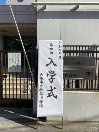 桜が満開の今日この日。108名の新1年生が希望を胸に桃谷中学校へ入学します。