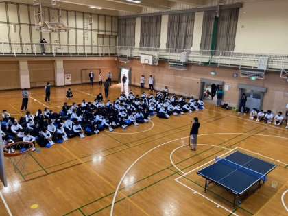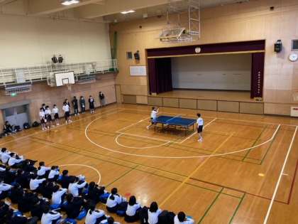卓球部はスマッシュやフォアハンドなど基礎的な技を披露しました。