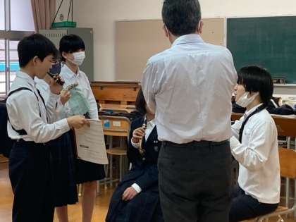 吹奏楽部は本日1年生が1名の参加ということもあり、先生や先輩に手厚くご指導をしてもらっていました。2年生は「部員を集めよう!」と外に向かって一生懸命に演奏練習を奏でていました。