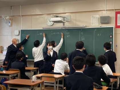 1組は、チーム対抗で漢字しりとりなど頭を使うゲームを行いました。
