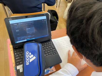 英語では今自分が一番興味のあることについて調べ、文を作っています。それを自分で撮影し、課題として提出します。