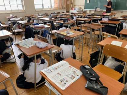 本日5時間目、地震と津波を想定した避難訓練を行いました。実際に地震が起こったとき、自分の命や大切な人の命を守るためにはどうすればいいのか、しっかりと考えることができました。