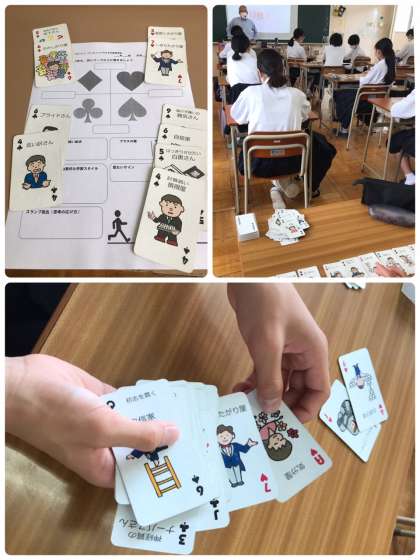1年生のときにも行いましたが、今回は3年生ということもあり、自分に合った学習法やスランプからの脱却法など、受験に特化した内容でのSPトランプでした。これからの受験までの9か月間の過ごし方、困ったときの対処法など、3年生のみんなは、少し勇気をもらうことができたのではないでしょうか?