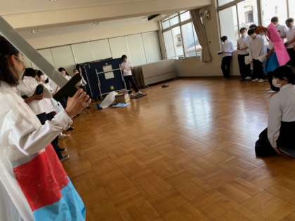 本日6時間目に修学旅行に向けて、夜のレクリエーションで行う、クラス劇の練習を行いました。